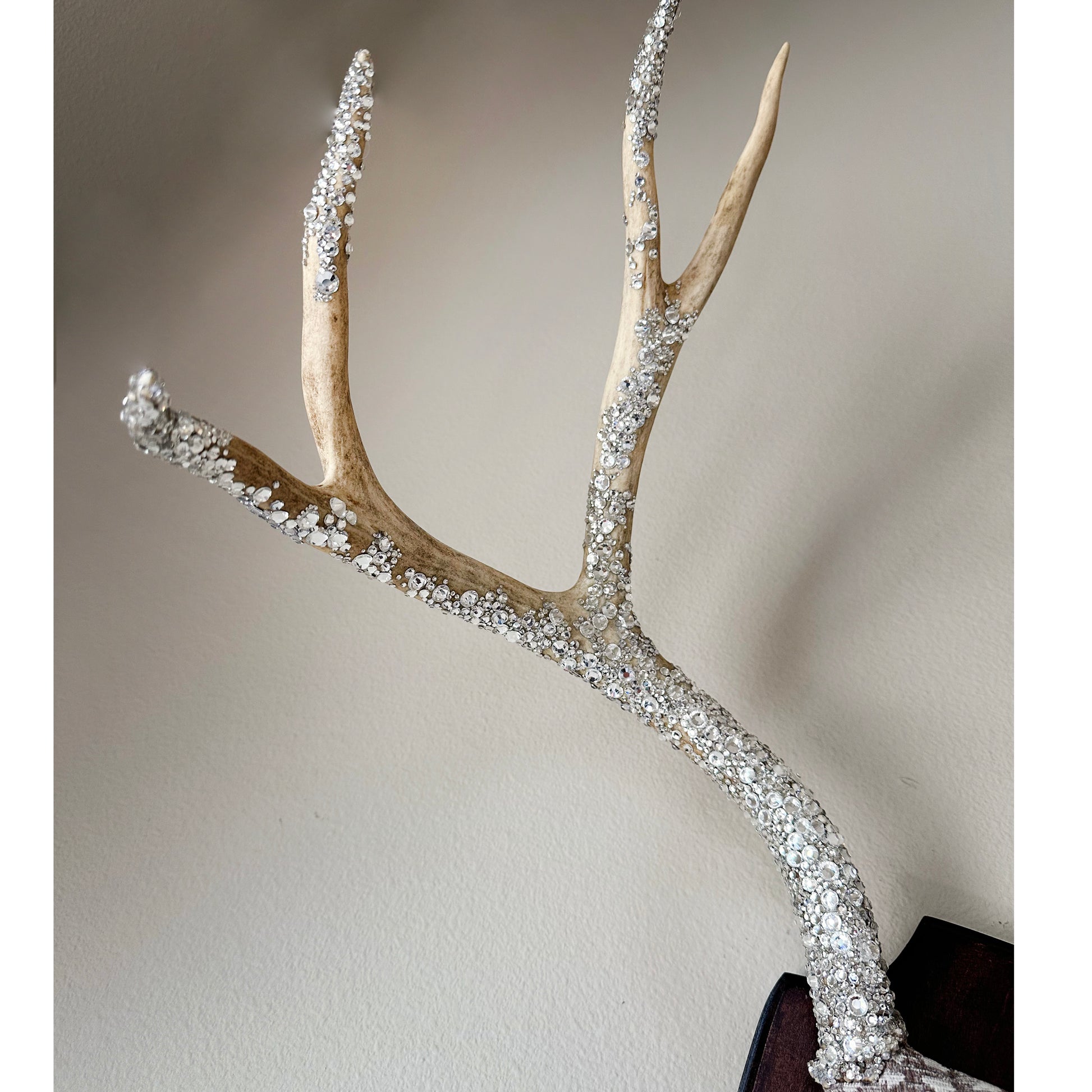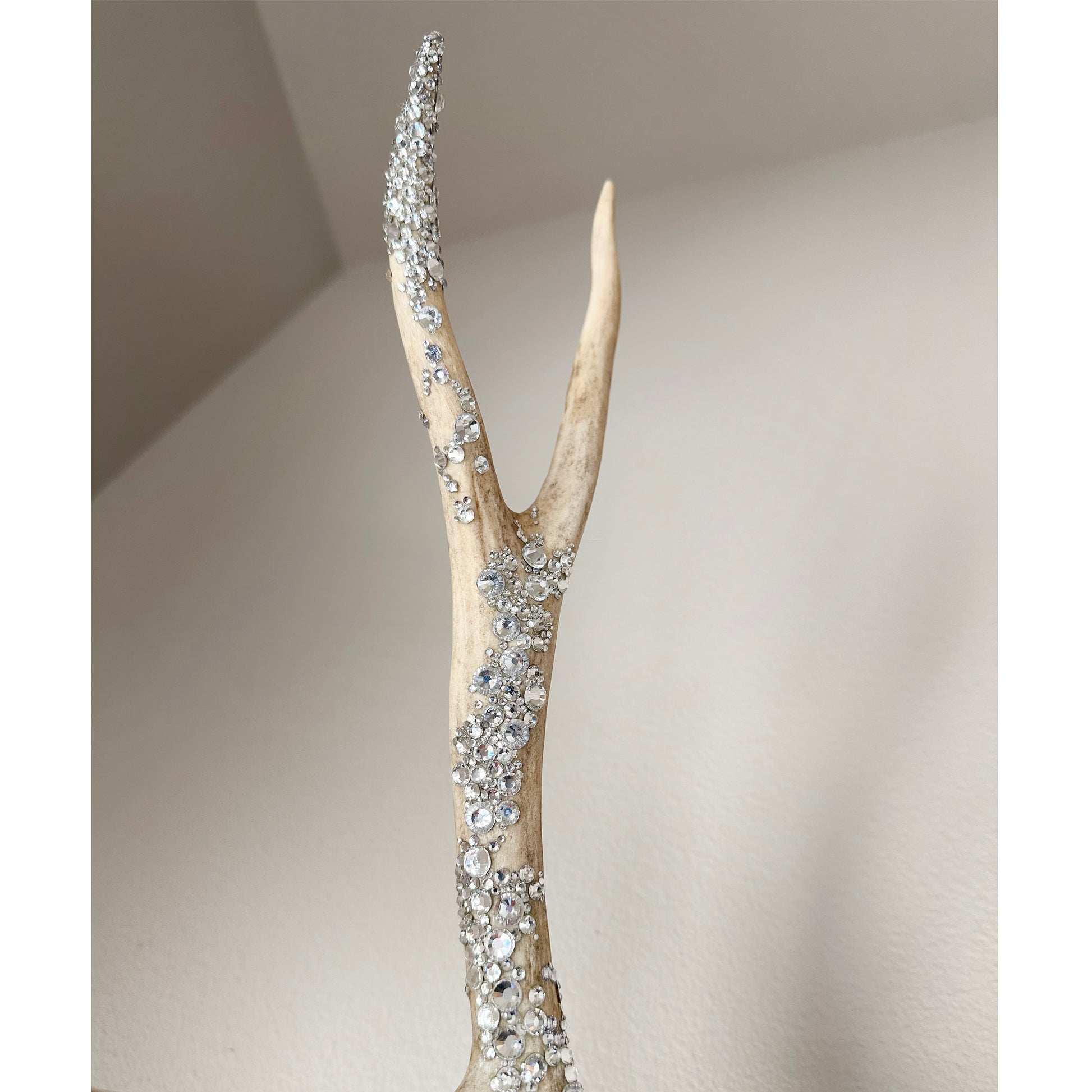Eos is an absolute stunner. With an enormous spread and beautifully branched, it's naturally breathtaking. Encrusted with thousands of crystal rhinestones, it reflects even the slightest bit of light resulting in a "sun glitter" effect that will take your breath away.